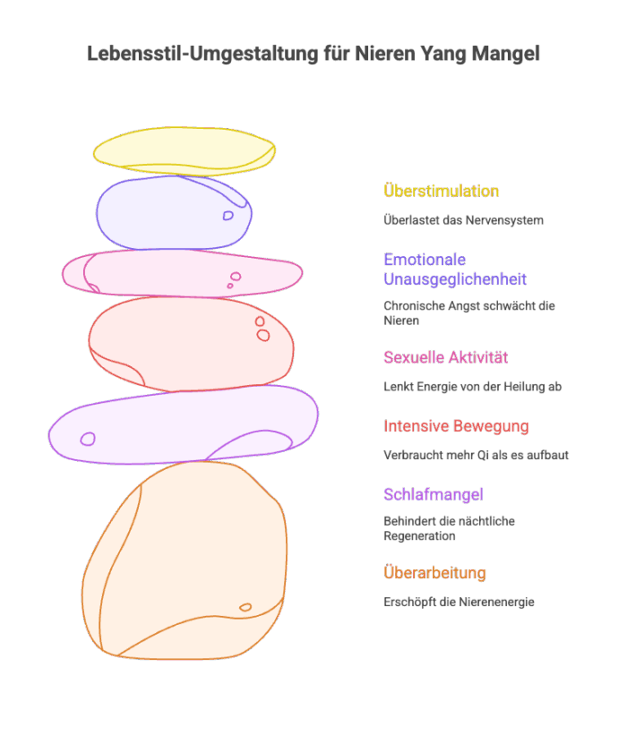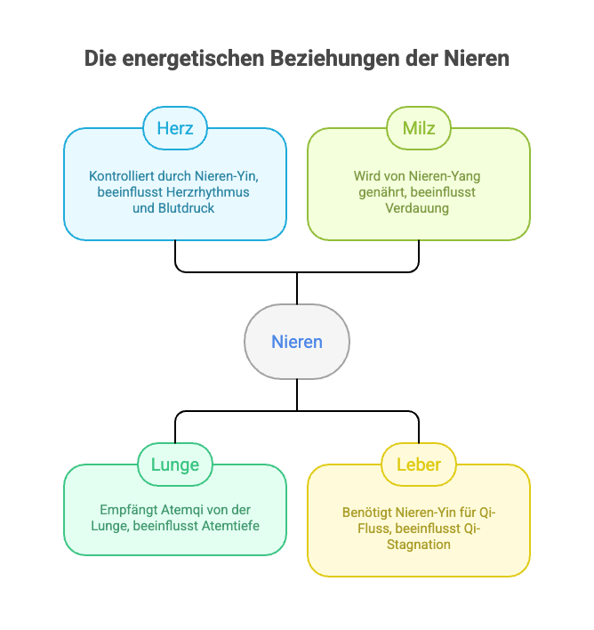 Wenn das Nieren-Yang (die Wärmequelle, die Kraft) erschöpft ist, dann kollabiert alles andere: Die Milz wird schwach, die Leber stagniert, das Immunsystem versagt, die Knochen werden brüchig, die Haare fallen aus, die Libido verschwindet, die Angst wird chronisch.