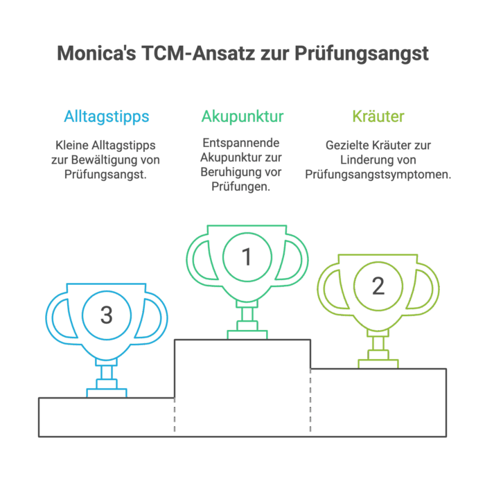 „Vor jeder Prüfung hatte ich schlaflose Nächte und Herzklopfen. Monica half mir, die Ursachen meiner Angst zu akzeptieren. Mit entspannender Akupunktur und kleinen Alltagstipps bin ich heute viel ruhiger – sogar vor wichtigen Prüfungen. (S., 24)“