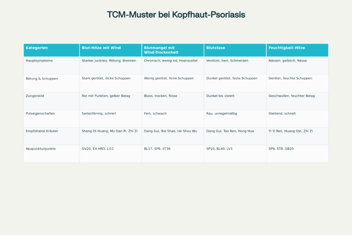 Die wichtigsten Faktoren hinter Kopfhaut-Schuppenflechte aus Sicht der Traditionellen Chinesischen Medizin: